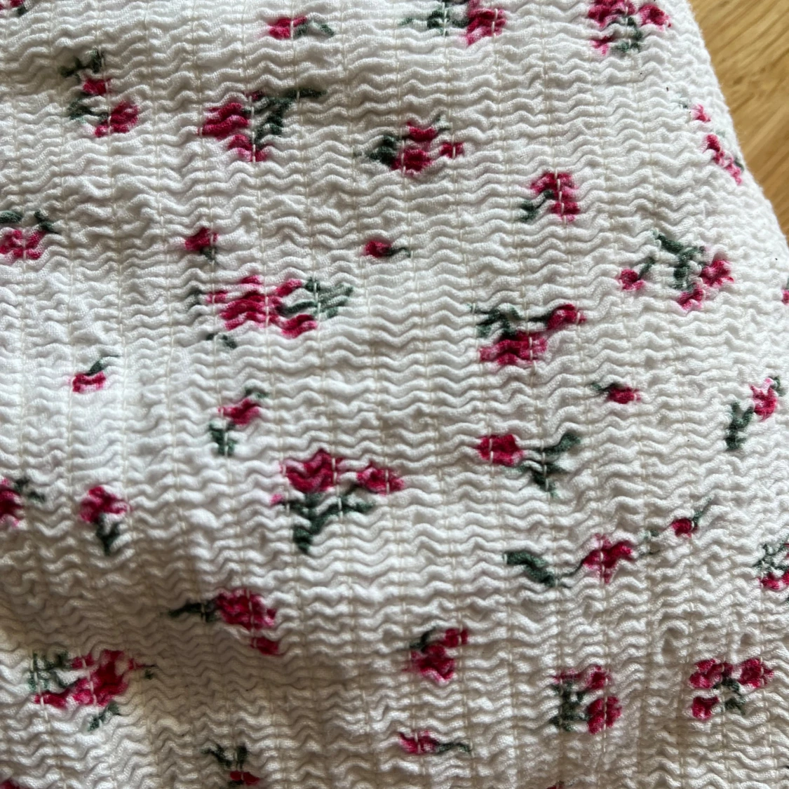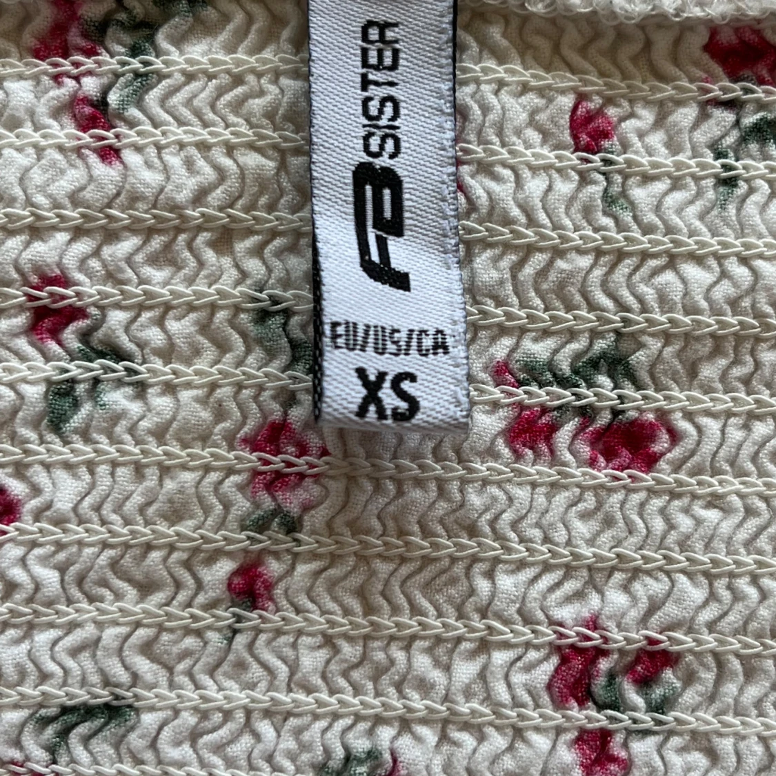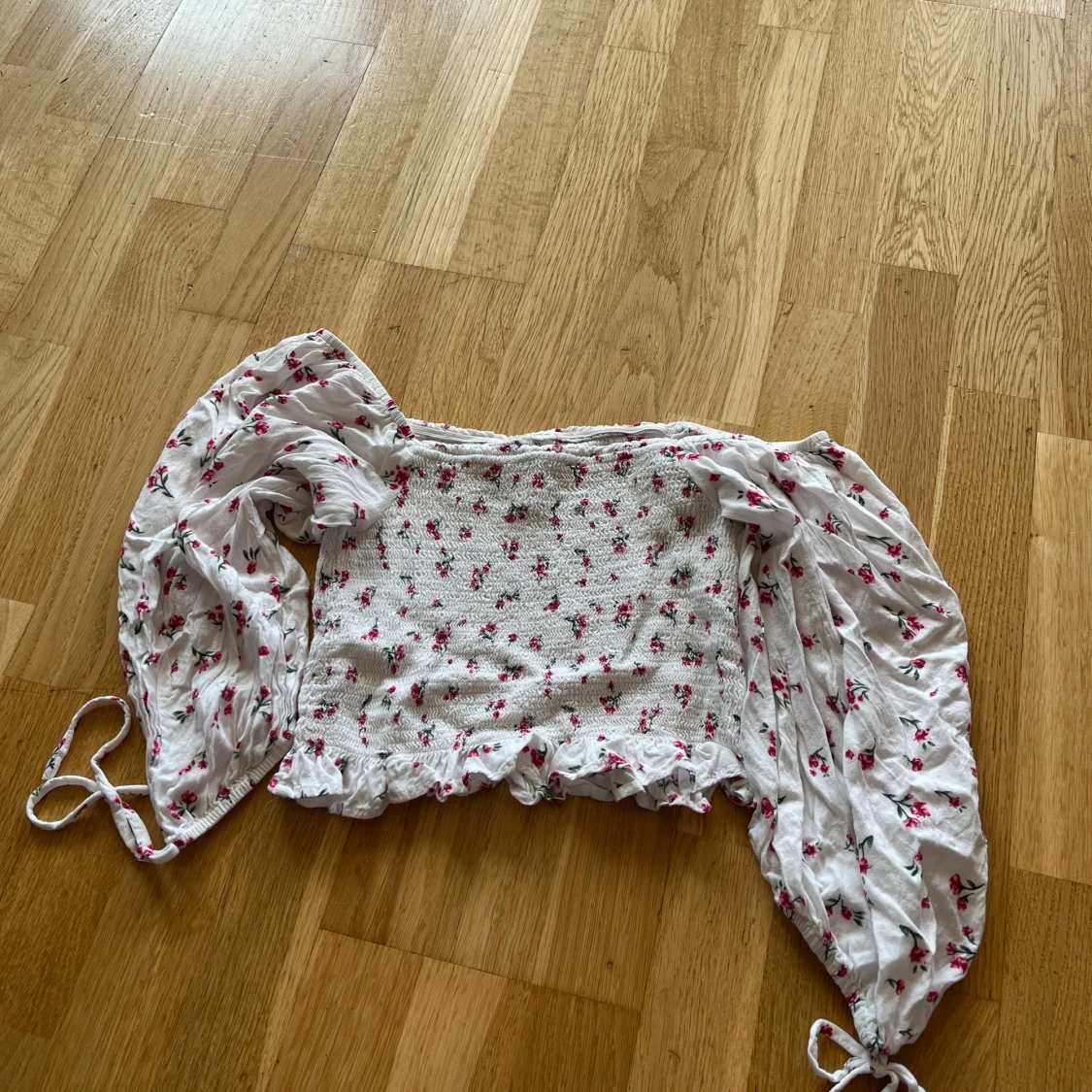 Söt vit (lite croppad) topp med små rosa blommor från New Yorker. Överkroppen är sydd i smock och ärmarna är halvlånga med en rosett detalj nedtill. Den går att ha både on och off shoulder och har en liten volangkant nedtill. Toppen är i storlek xs men funkade för mig även när jag normalt hade s. Säljer då den nu blivit för liten. Jag säljer även en topp i samma modell men annan färg om det är av intresse. Hör gärna av dig om du har frågor! 😊