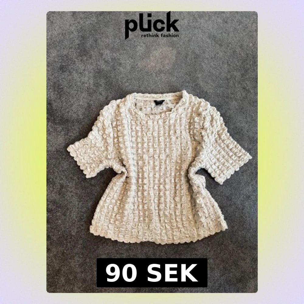 Säljer en beige topp från Lindex med korta ärmar och rutig textur över tröjan. Är lite mindre i storleken även fast att det är en L, skulle såga att det är mer en S. Perfekt för dig som gillar neutrala färger och vill ha något som sticker ut lite.