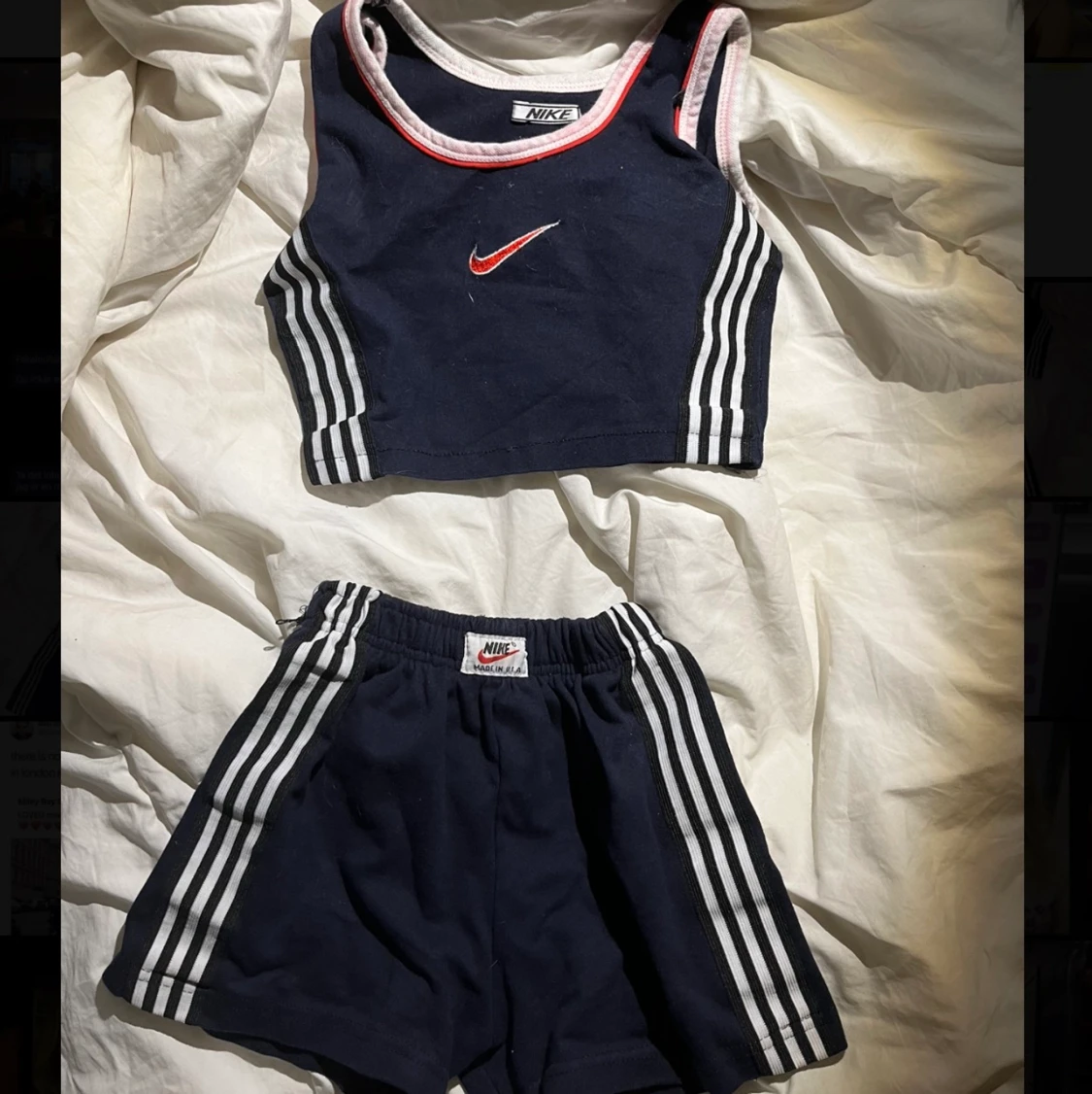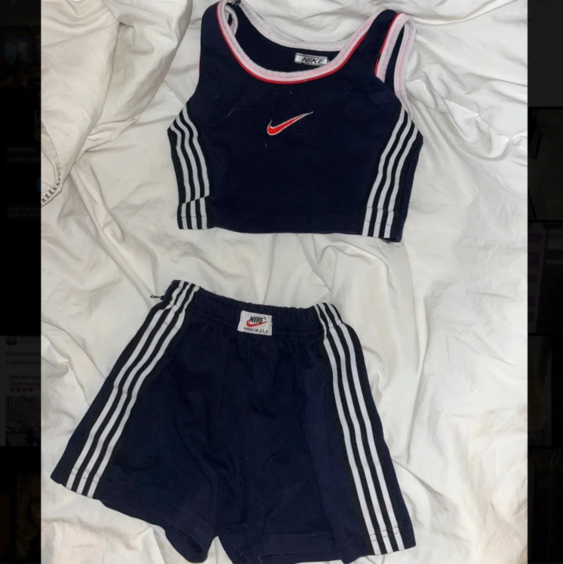 Supersnyggt vintage nike set som har blivit för litet för mig. Shortsen har resår så dom passar xs/s men toppen är xs