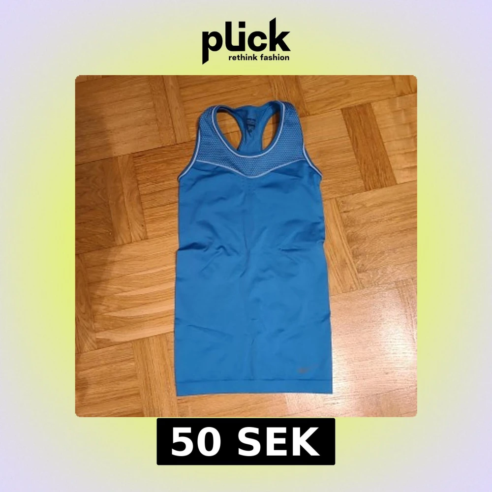 Nike Pro linne i blått med meshdetaljer upptill och vita kantband. Modellen är ärmlös med brottarrygg och tillverkad i Dri-FIT-material som andas. Perfekt för träning och sportiga aktiviteter.