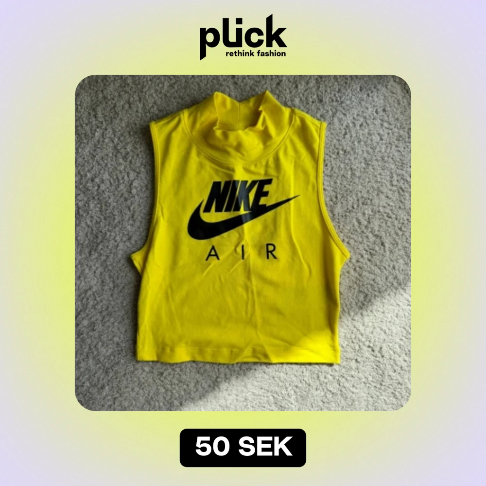 En gul ärmlös topp från Nike med svart Nike Air-logotyp på framsidan. Toppen har en hög krage och är tillverkad i ett bekvämt material. Använd 1 gång.