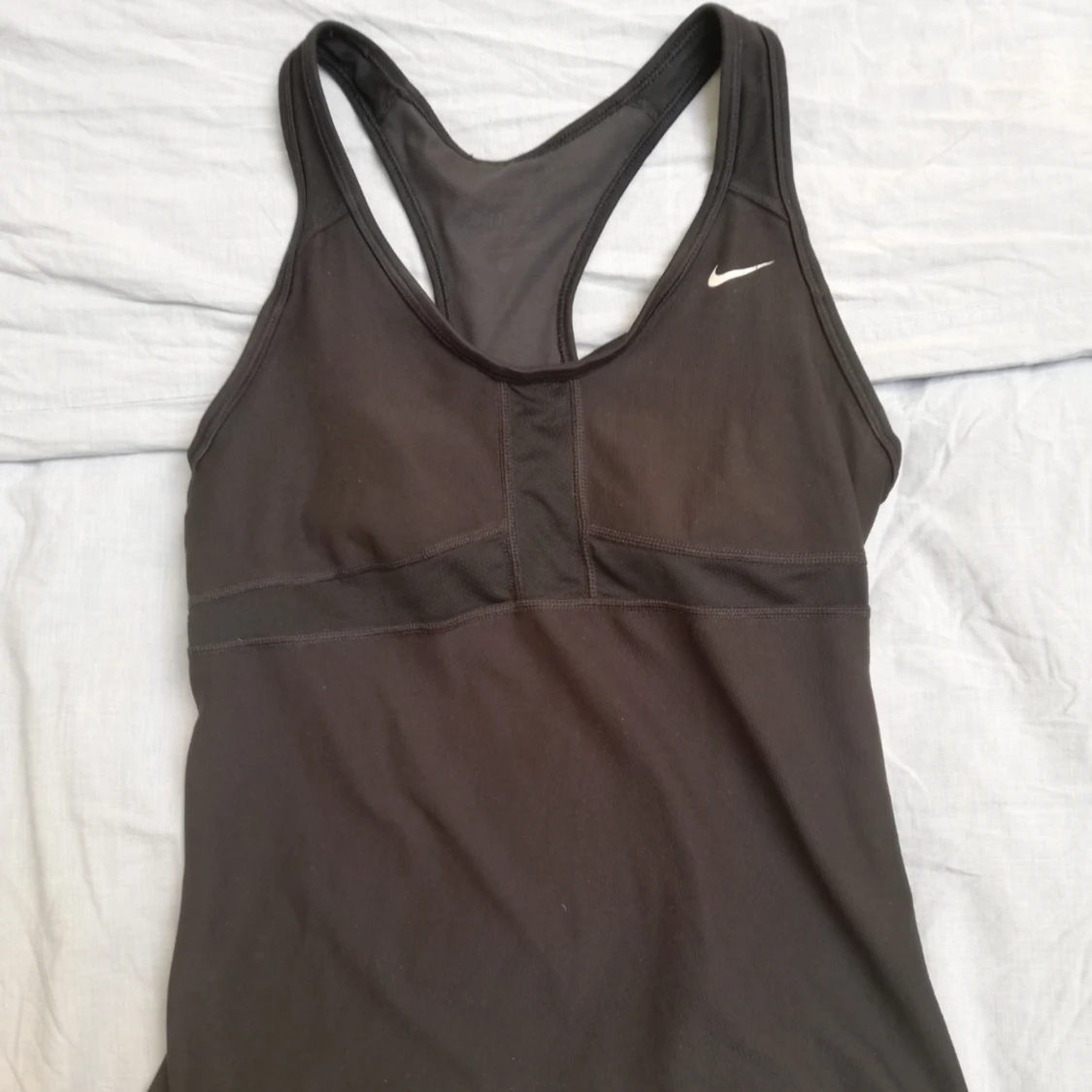 Träningslinne från Nike med inbyggd sporttopp. Dryfit. Riktigt bra stöd för bysten. Använd men bra skick.