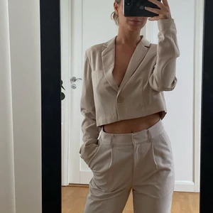 Beige cropped blazer❤️ snygg att styla med ett par matchande kostymbyxor (som på bilden) eller ett par baggy jeans. Aldrig använd och prislapp hänger kvar.