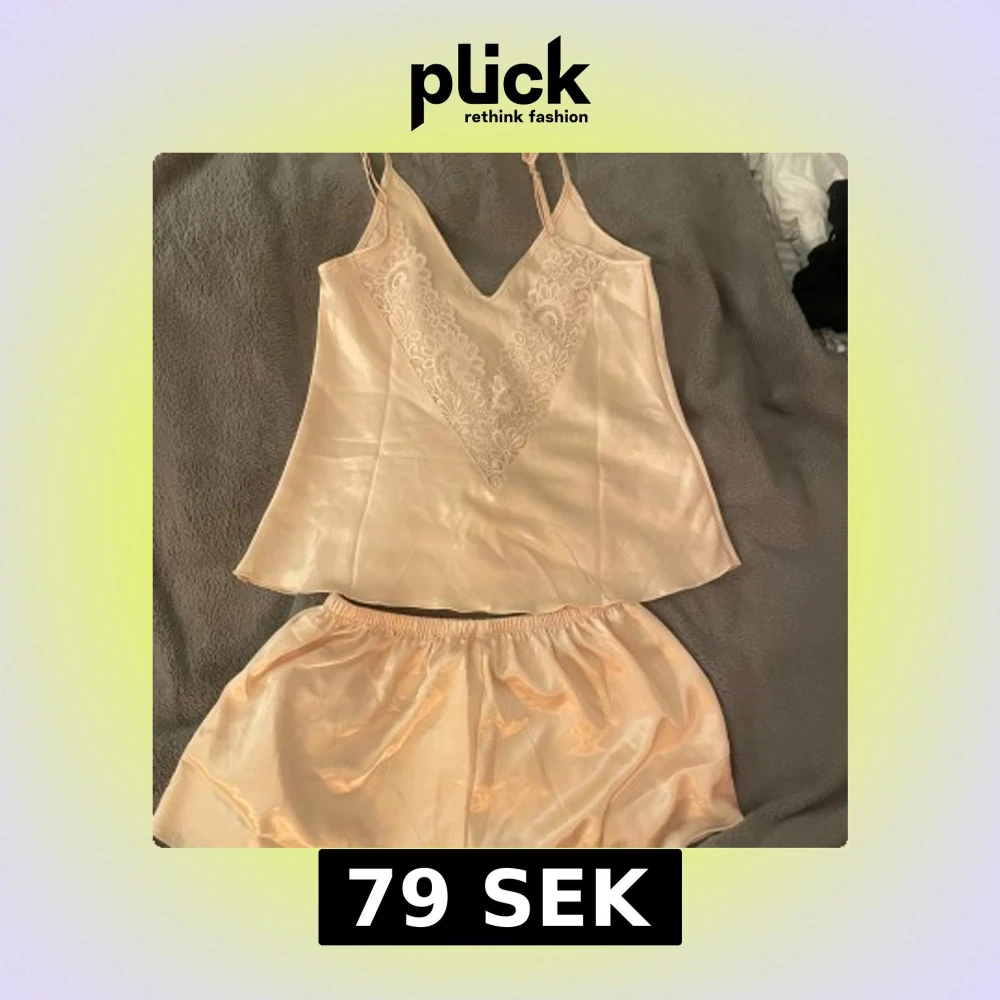 Säljer ett jättefint satinpyjamas-set med v-ringad spetsdetalj till ryggen. Axelbanden är justerbara och materialet på pyjamassetet är skönt och tunnt. Aldrig använd!!
