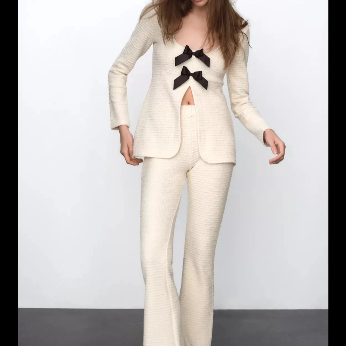 Helt nytt Zara sätt som aldrig är användt med prislapp kvar!!! Endast provad, säljer för att jag känner att de inte riktigt var min stil då de även satt bra. Båda byxorna och tröjan är i storlek S! Byxorna finns att köpa på Zara men inte toppen längre🤍🤍🤍🤍