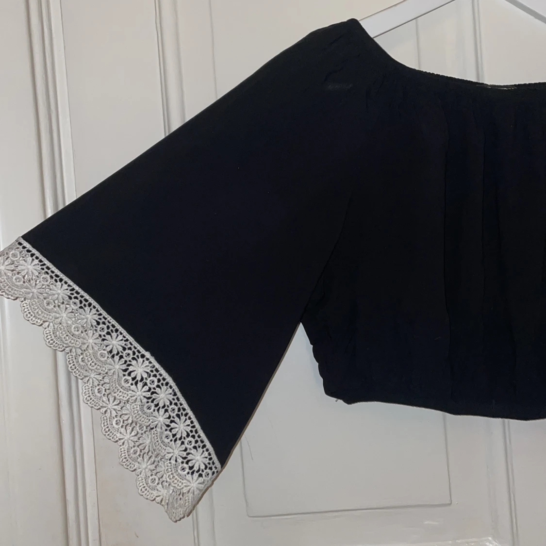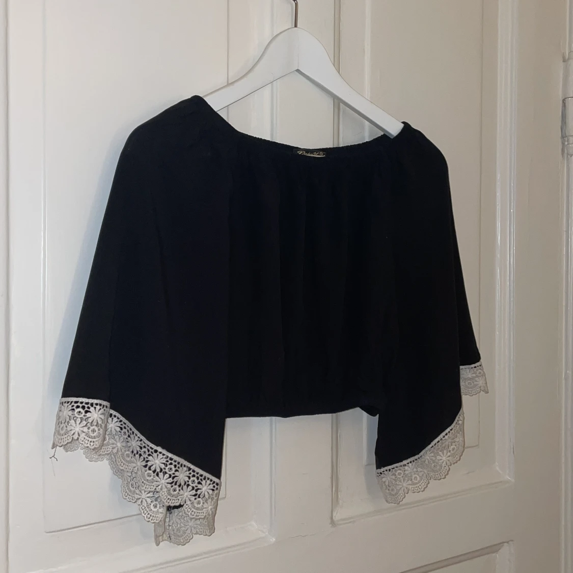 Köpte denna tröja utomlands för många år sedan men har aldrig använt den. Det är en magtröja med luftiga armar och spets på ändarna. Väldigt fin men säljer då jag aldrig använder den 🫶🏼🤍🤍