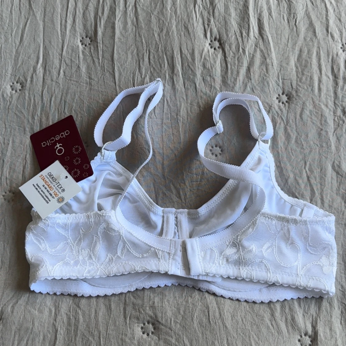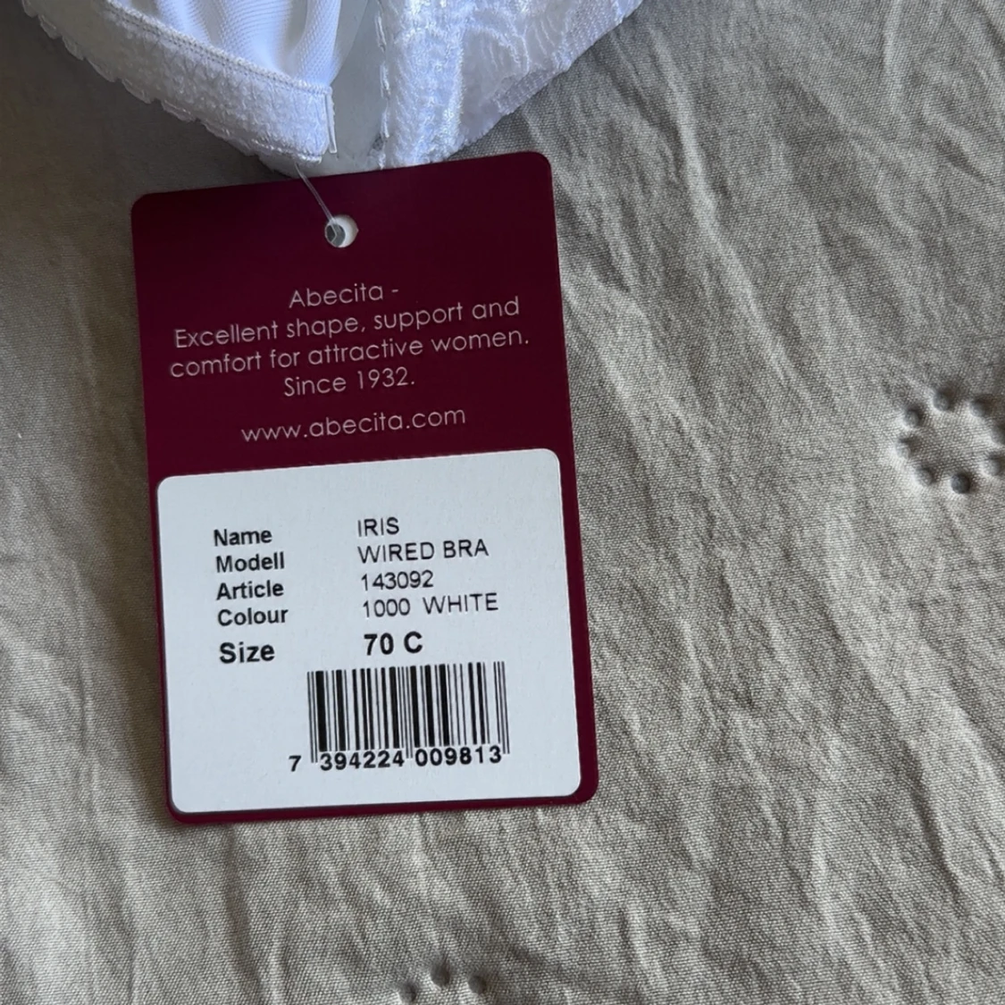 Säljer en vit bh från Abecita, modell Iris, i storlek 70C. Bh:n har bygel, justerbara axelband och fina spetsdetaljer längs sidorna och bak. Materialet är mjukt och bekvämt. Skulle säga att den är en storlek mindre i kupan🫶🏻