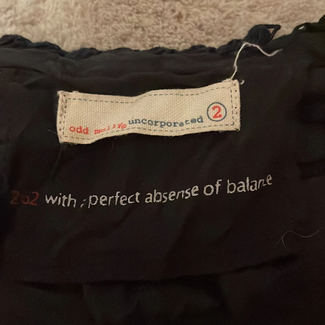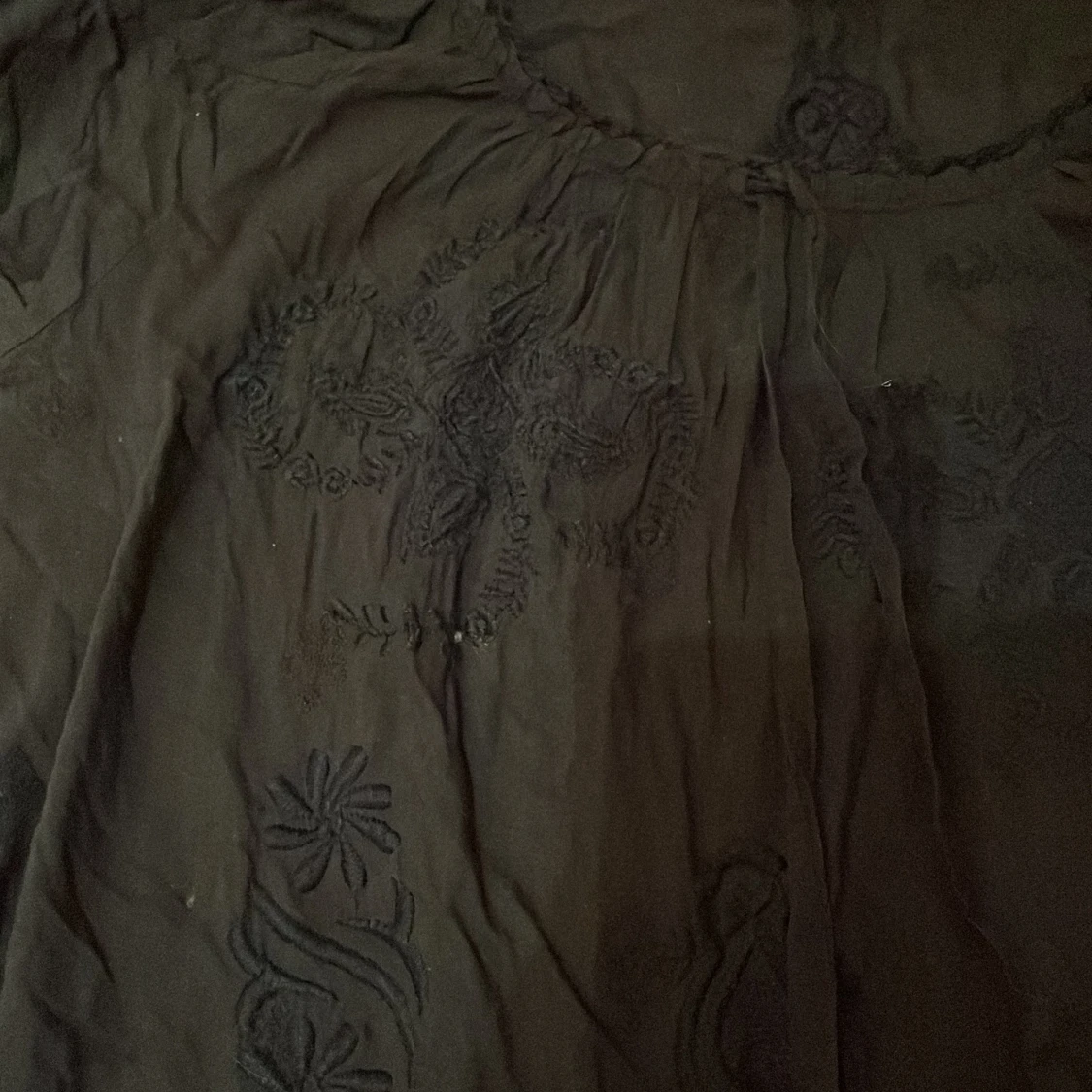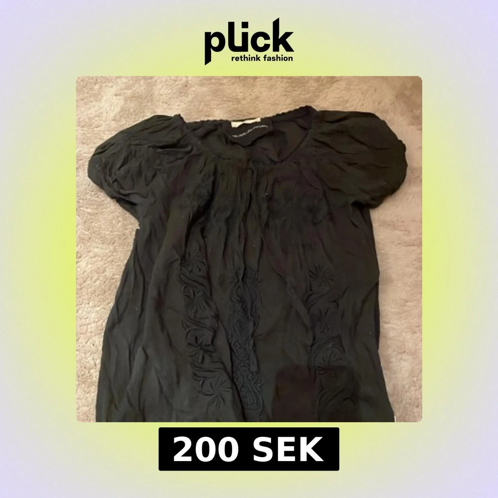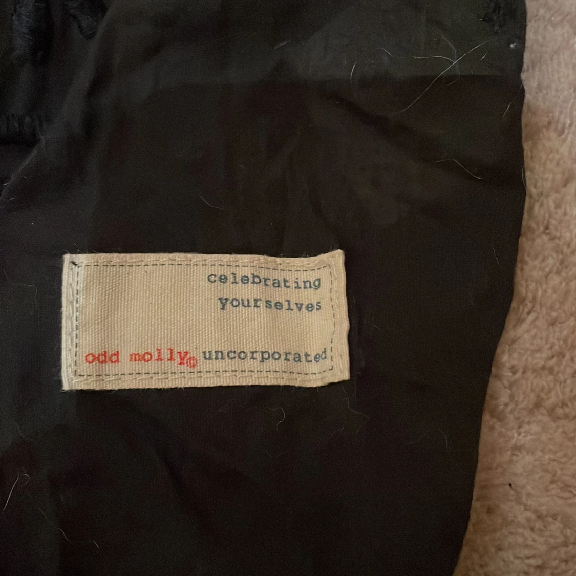 Säljer en svart blus från Odd Molly med broderade detaljer. Blusen har korta ärmar och en rund hals.