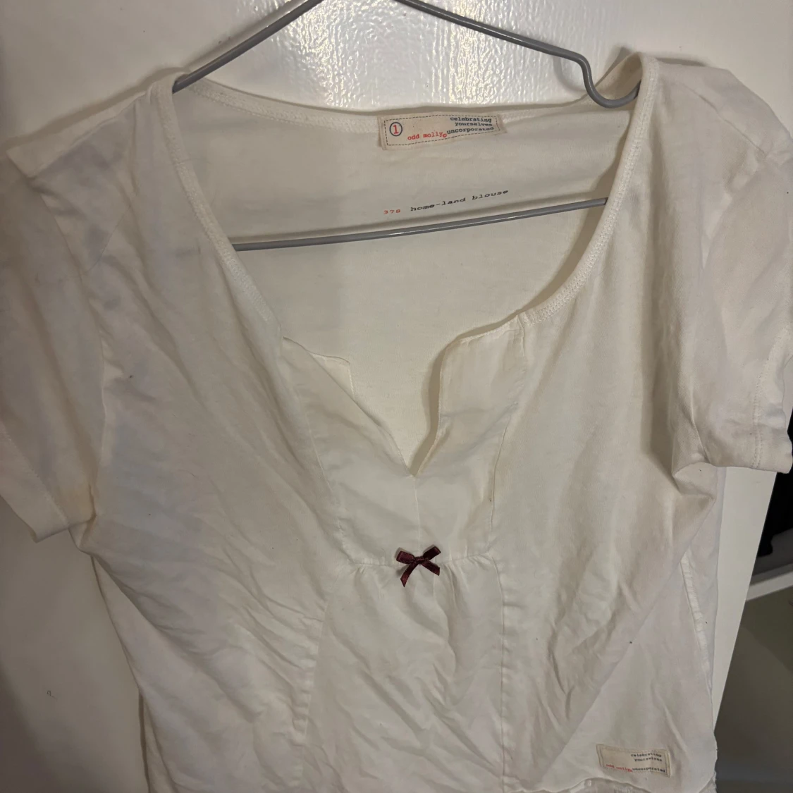 Säljer en vit topp från Odd Molly med en liten röd rosett