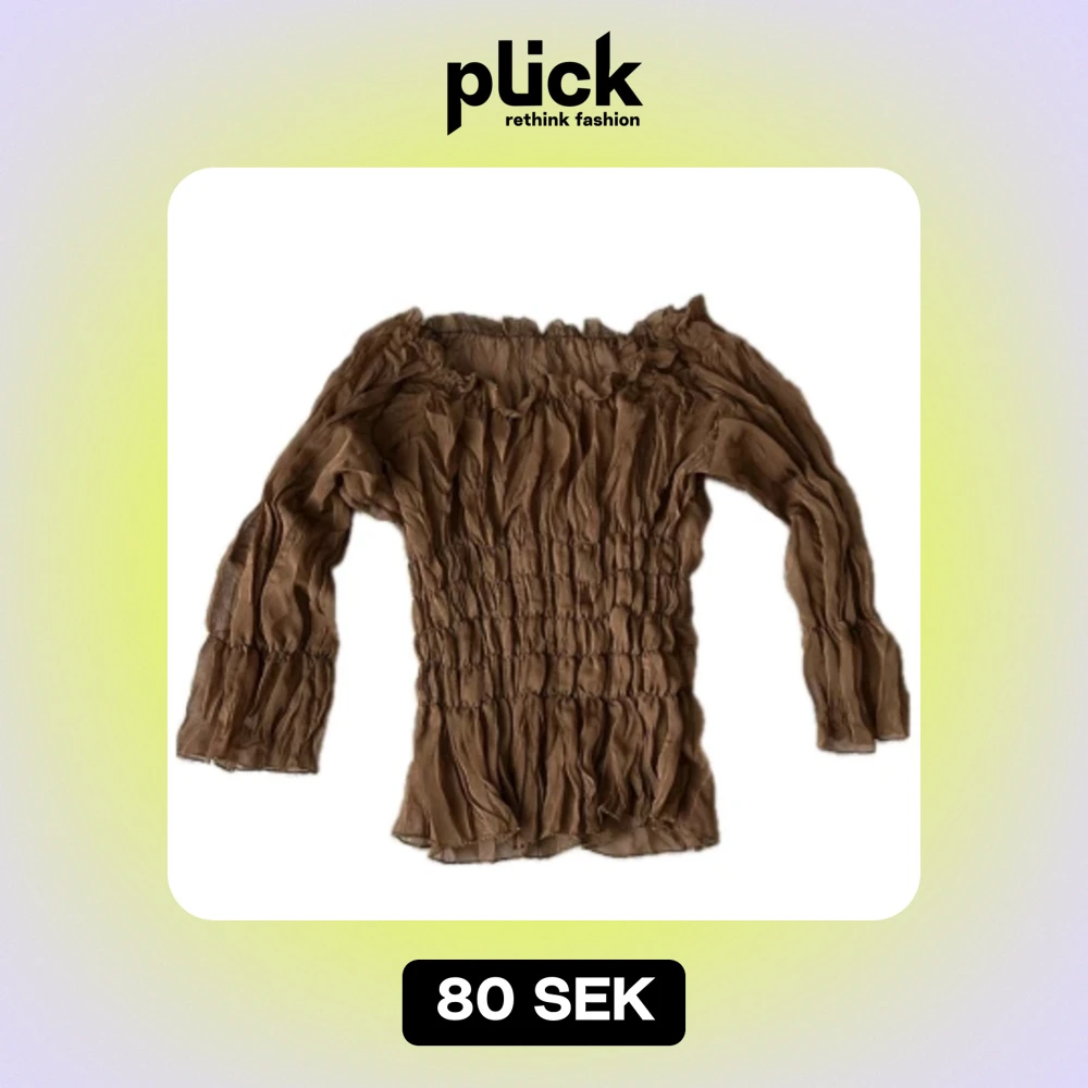 Brun tunn blus som kan bäras off shoulder eller som rund ringning. Använd men väl omhändertagen. Står ingen storlek, elastisk och skulle säga att den passar S-M. 🤎