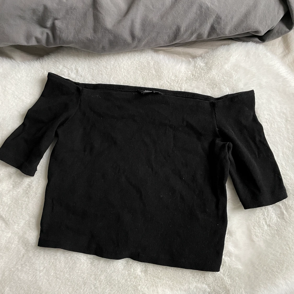 En svart off-shoulder toppfrån monki. Säljer pga använder den inte längre. Den är ribbad.
