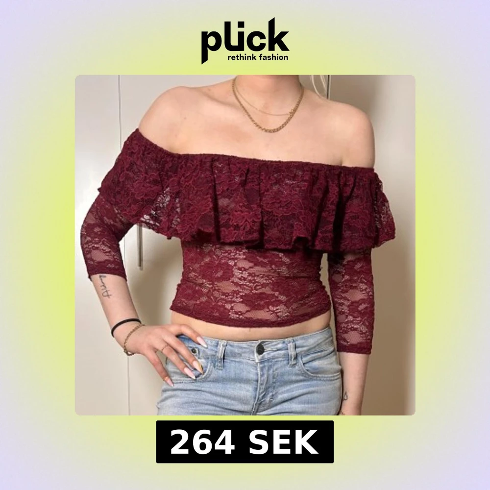 Vinröd off shoulder spets topp med volang i storlek xs. Köp sker via köp nu, jag postar inom 24h. Kvar tills markerad såld