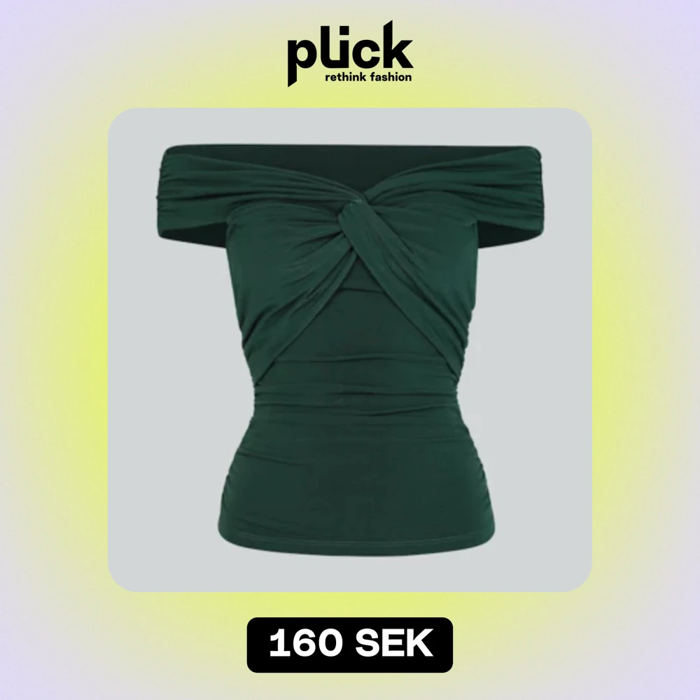 En grön off shoulder topp från BikBok i storlek S som jag säljer pga den aldrig kommit till användning💕
