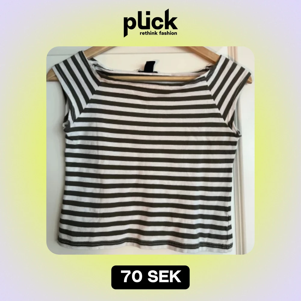 superfin off shoulder topp, randig i vit/grön färg (se den andra bilden för mer acurate bild av färgen). äldre H&M i storlek S, fint skick ❤️🔥