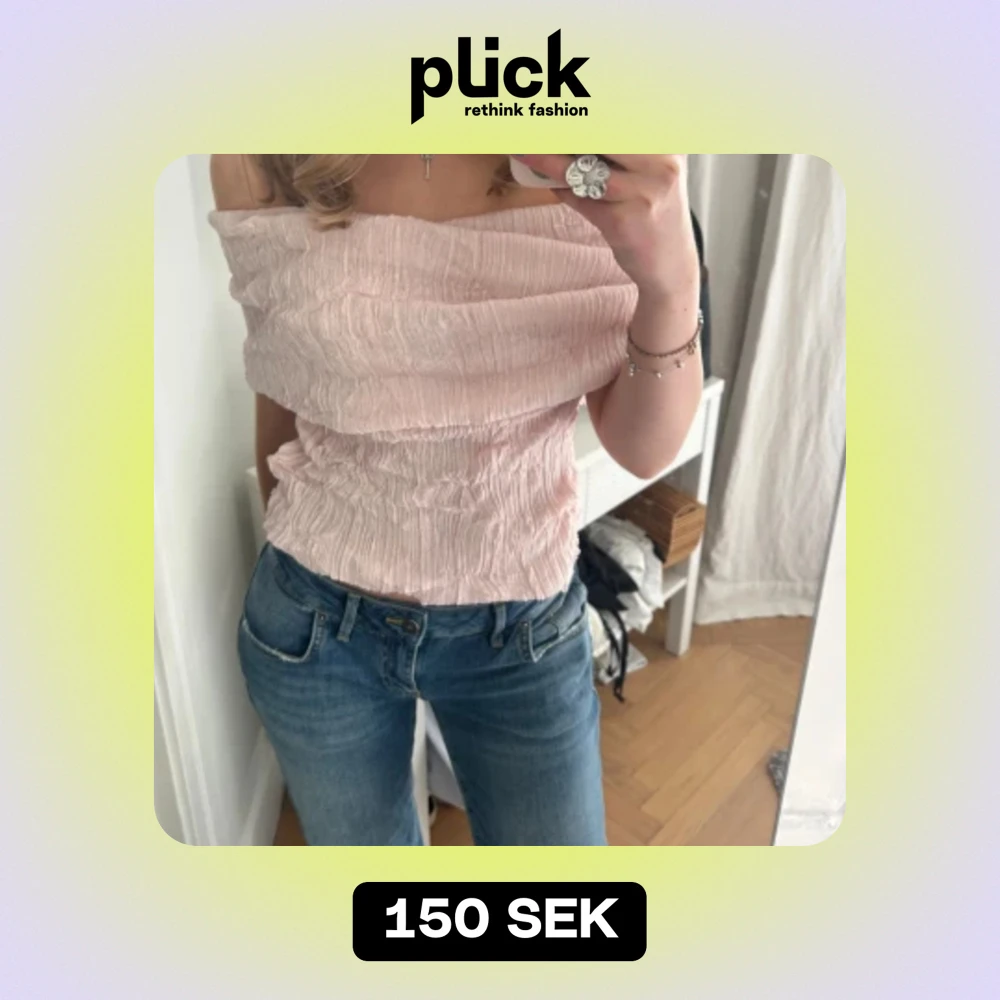 Supersöt rosa skrynklad offshoulder topp i storlek S! Endast använd 1 gång💕