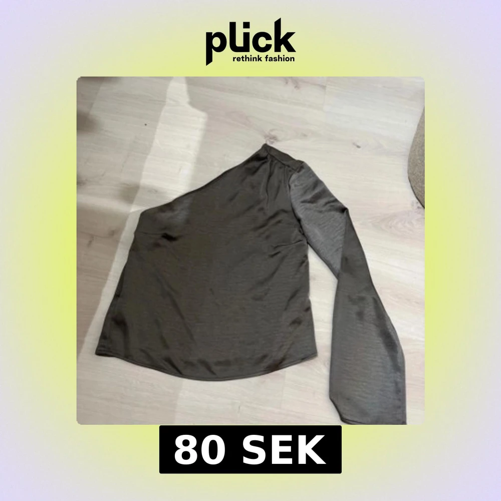 Snygg grå oneshoulder topp med lång ärm. Perfekt för en stilren look. Materialet har en lätt glansig finish som ger en elegant touch.