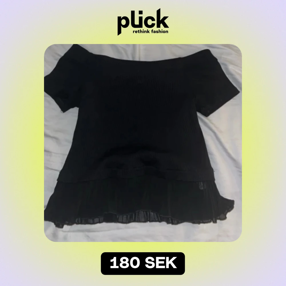 Säljer denna slutsålda svarta off shoulder topp från zara med detalj längst kanten där nere. Använd kanske 5 gånger, köpt i Barcelona förra året. Hör av er för fler bilder.