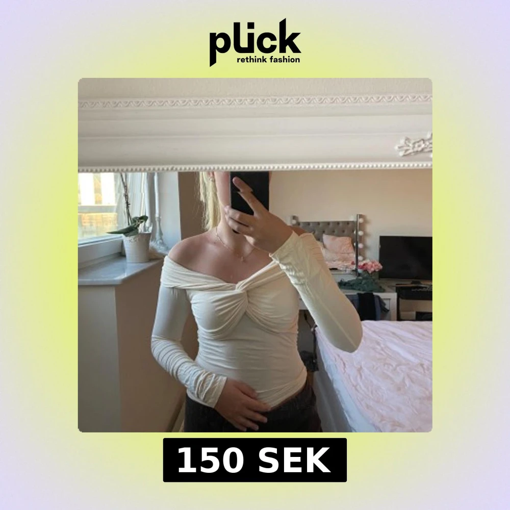 Säljer en cremevit offshoulder topp med lång ärm och snygg twist-detalj framtill. Toppens material är stretchigt och sitter tight mot kroppen, perfekt för dig som gillar en stilren och trendig look. Passar till både jeans och kjol för en cool outfit.