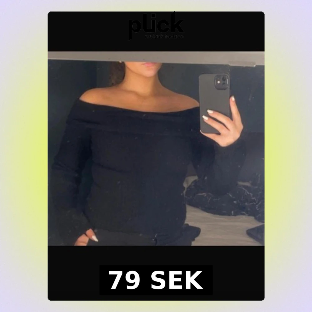 Snygg svart stickad topp med offshoulder-modell och långa ärmar. Storlek S