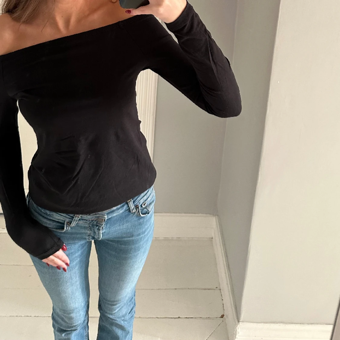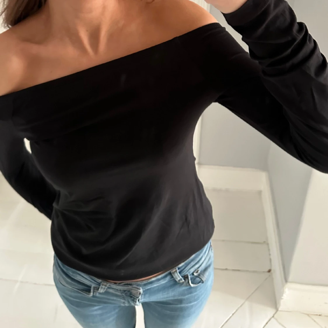 Säljer denna jätte fina svarta off shoulder toppen, nästan aldrig använde därför i väldigt bra skick