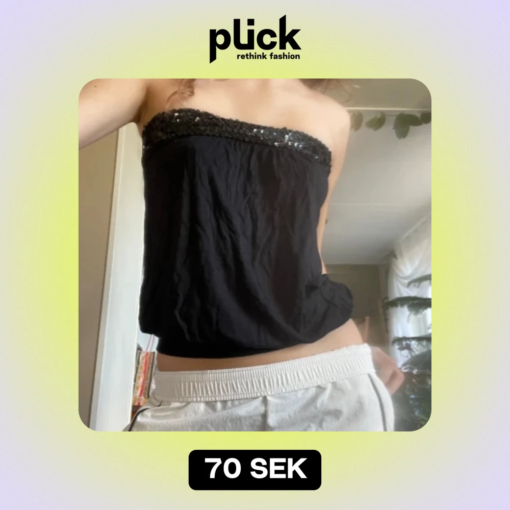 Bandeau topp men paljetter. Mer åtsittande band längst ner så kan bäras högre upp/längre ner för olika looks