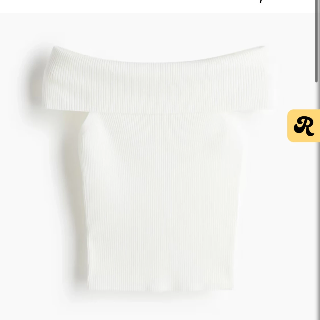 Supersnygg vit ribbad topp med offshoulder-design.Toppen är figurnära och har en bred, vikt kant över axlarna som ger en stilren och trendig look. 🥰🥰