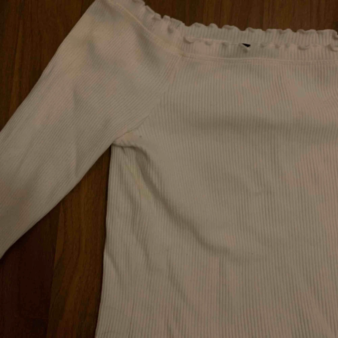 Supergullig vit långärmad tröja från Gina! Croppad och off shoulders i storlek M men passar även mindre