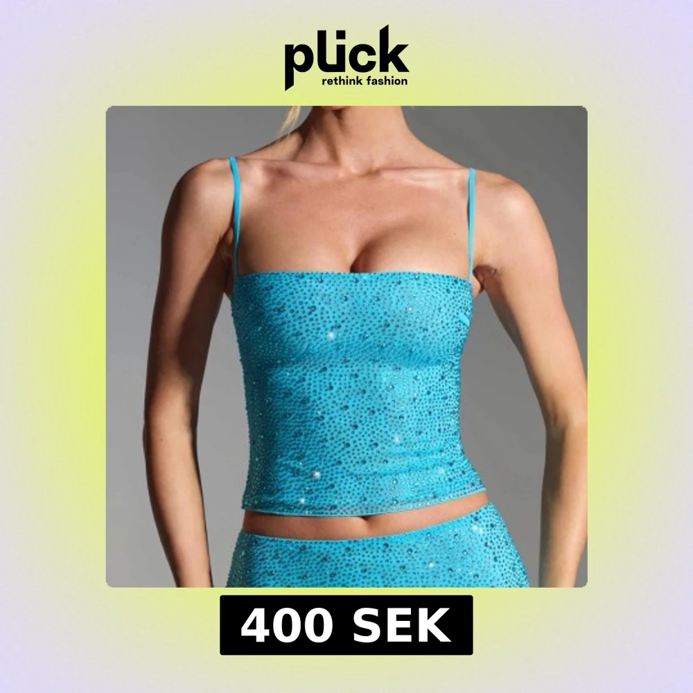 Snygg turkos tubtopp med paljetter som ger en glittrig effekt. Toppen har smala axelband och en tight passform, perfekt för festliga tillfällen. Nypris 600kr, Oanvänd med lappar kvar