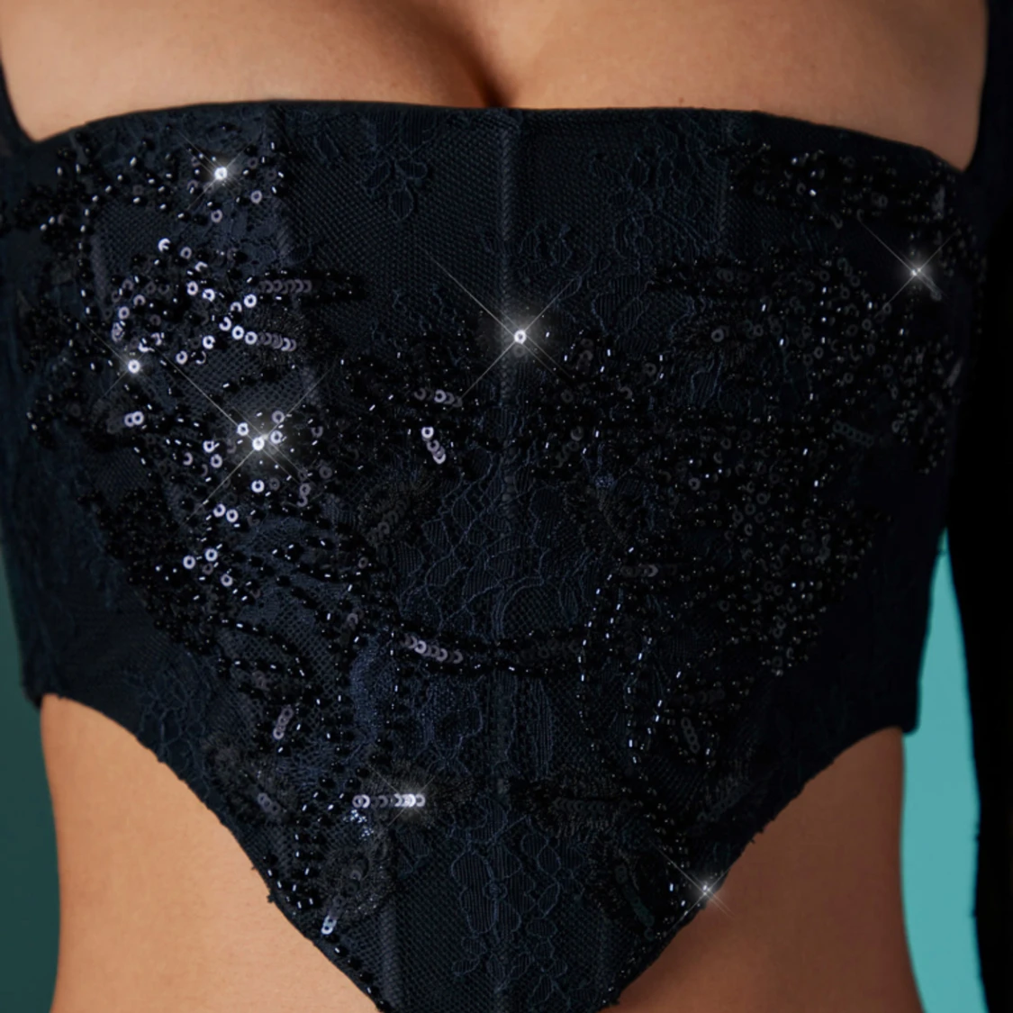 Glittrig crop top från Oh Polly. Aldrig använd då den var för liten för mig. Storlek 8 på hemsidan, men skulle säga XS. Nypris 700kr.