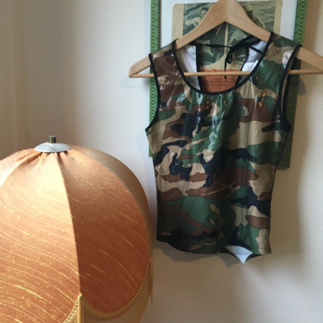 Assnyggt 90s linne med militärmönster! Storlek S, eller XS. Frakt tillkommer om inte möte i Sthlm bestäms