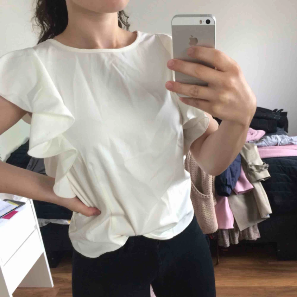 Topp med volang på ärmarna. Okänt märke och det står ingen storlek i toppen. Gissar på S/M. Köpare står för frakt