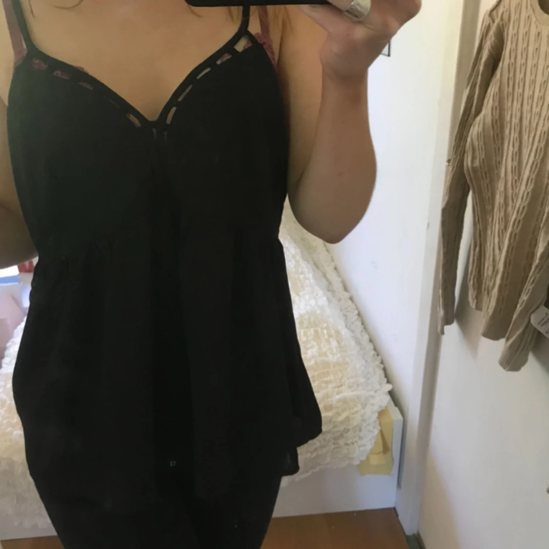 Somrigt linne med dragkedja i sidan. Jag köpte den i XL då jag ville ha den luftig så passar alla beroende på hur man vill att den ska sitta! Använd 1 gång, köpt i Polen.