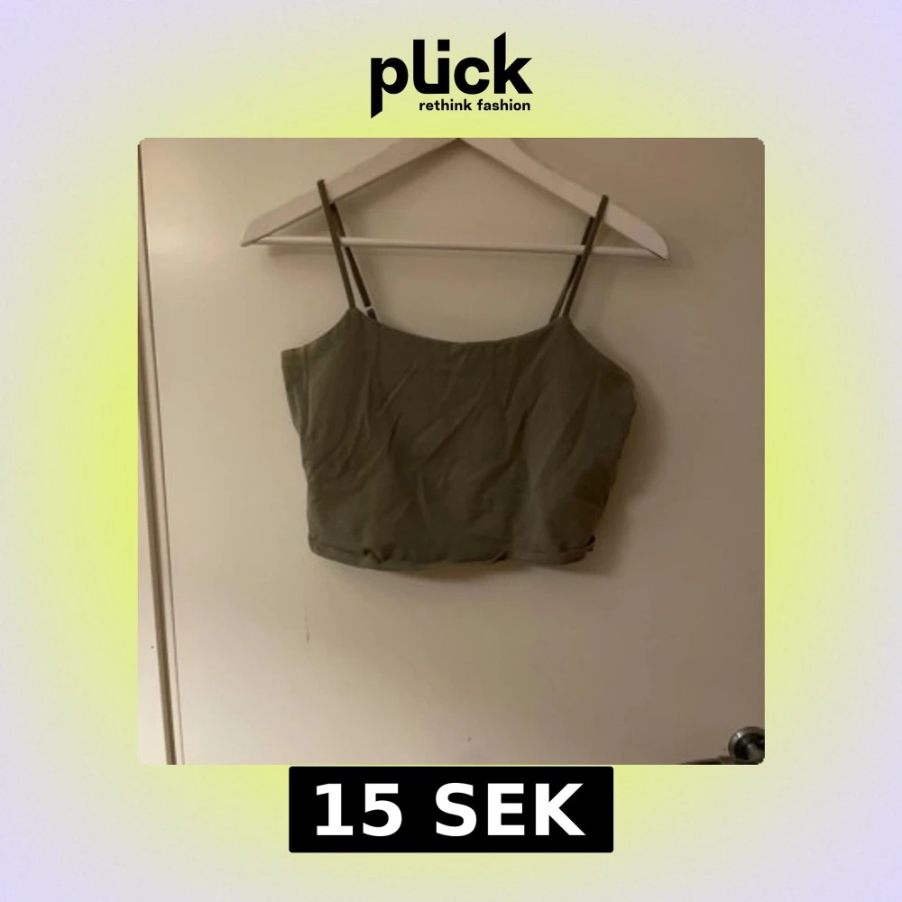 Säljer en olivgrön croppad linnetopp med smala axelband. Säljer då jag inte har nån användning av den. Det finns ett litet hål i ryggen men är inte synlig på. Använd gärna KÖP NU🩷