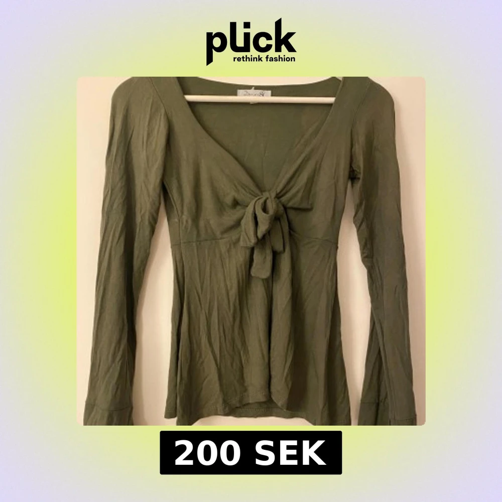 Olivgrön långärmad topp från Design by Si med v-ringning och snygg knytning framtill. Toppen har en figurnära passform och är tillverkad i mjuk bomull, perfekt för lager på lager eller som den är.