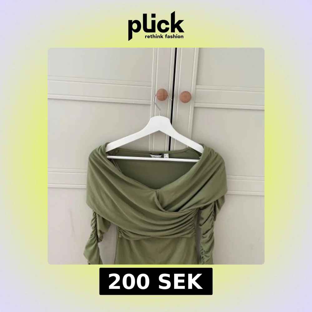 Snygg olivgrön omlottopp från Vera Moda i storlek XS. Toppen har långa, rynkade ärmar och en draperad omlottdesign över axlarna. Mjuk och stretchig känsla, perfekt för en lyxig middag!