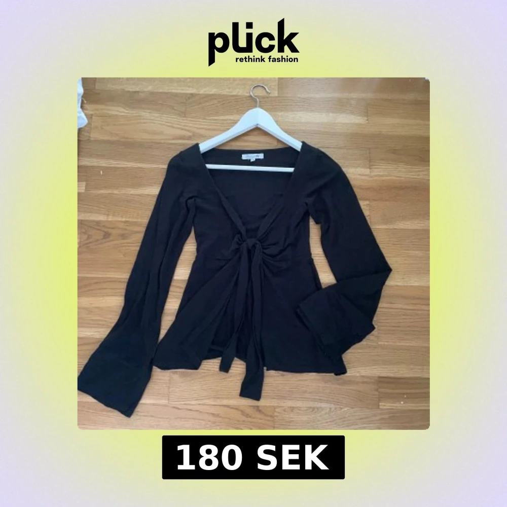 Svart omlottopp från Designbysi med långa utsvängda ärmar och djup v-ringning. Toppen har knyt framtill som ger en snygg och trendig look.