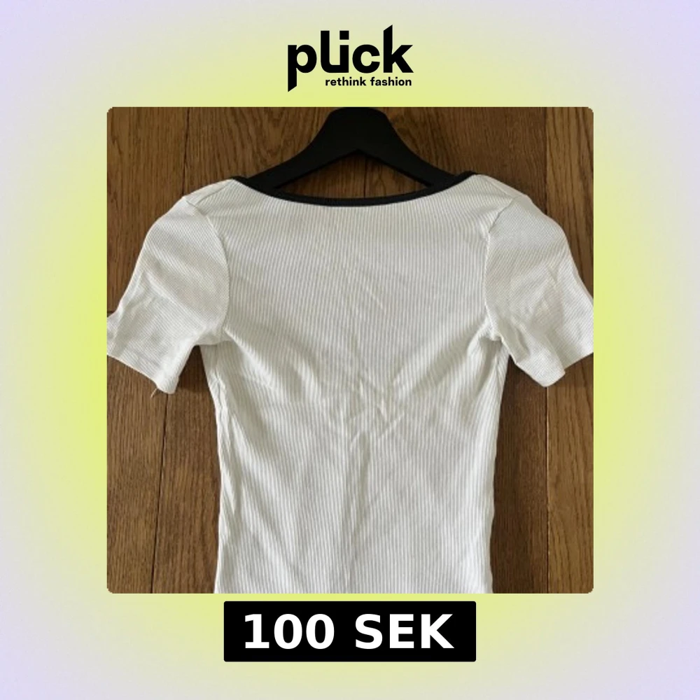 Vit ribbad topp med svarta kanter från pimkie. Djup ringad längs ryggen, perfekt för att visa dina snygga ryggmuskler. Sitter tight