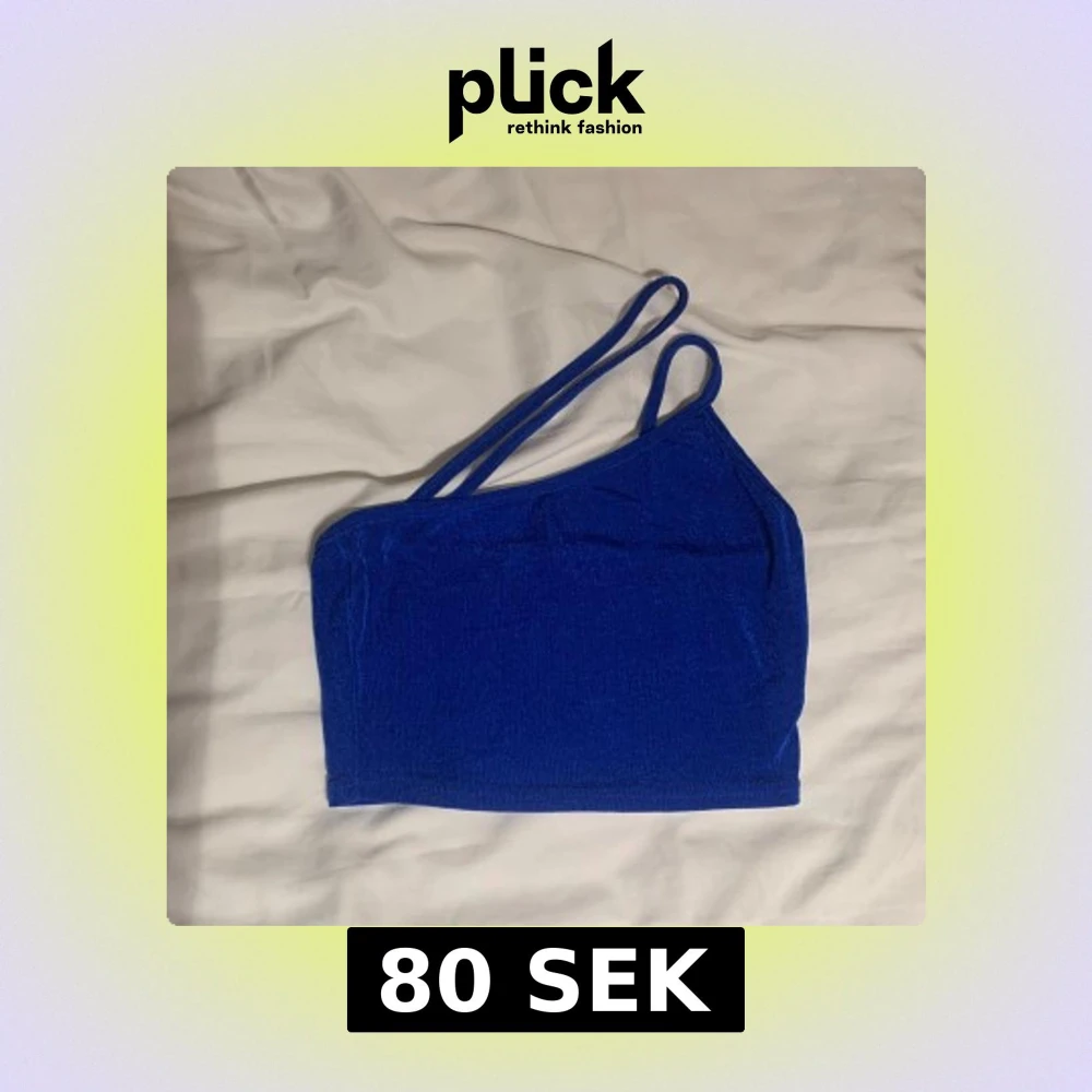 Snygg blå oneshoulder topp med dubbla axelband. Passar bra till både jeans och kjol.