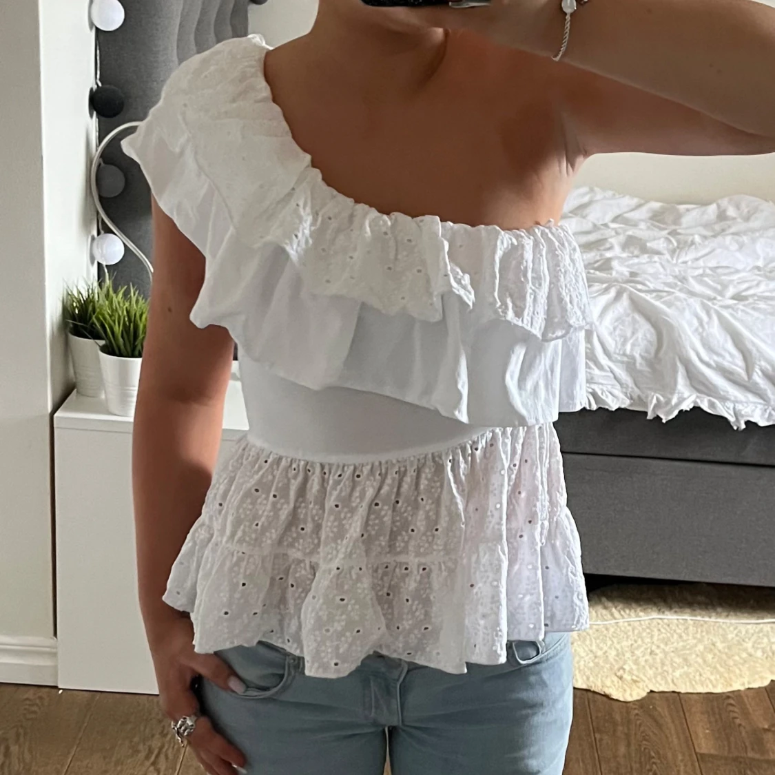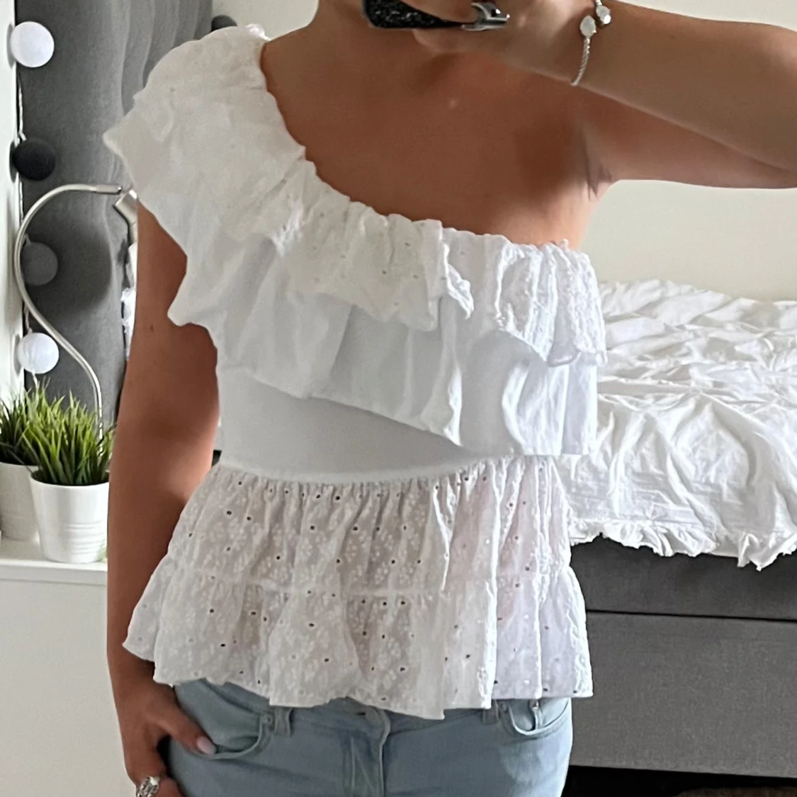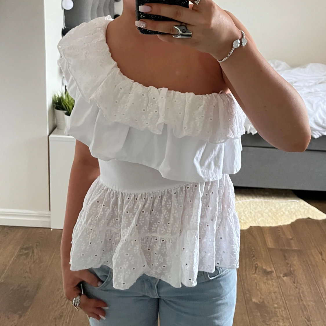 så så snygg topp från Zara men som aldrig kommit till användning, tror den blivit lite missfärgad när jag tvättade den så den är liiiite ljusblå i vissa ljus men man tänker knappt på de!!🤍🤍