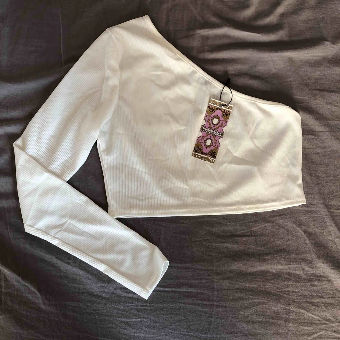 Vit enarmad top från boohoo. Aldrig använda, prislapp sitter kvar. Säljer för 30kr, köparen står för frakt.