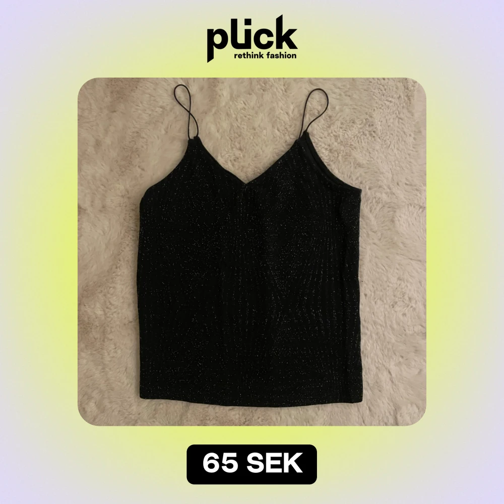Snygg svart glittrig linnetopp med smala axelband. Perfekt för festliga tillfällen eller en utekväll💝🎀