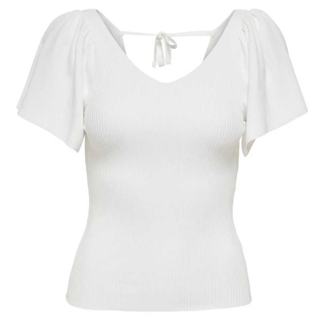Snygg vit ribbad topp med korta puffärmar och knytband i ryggen, från only❤️Använt 1-2 gånger.