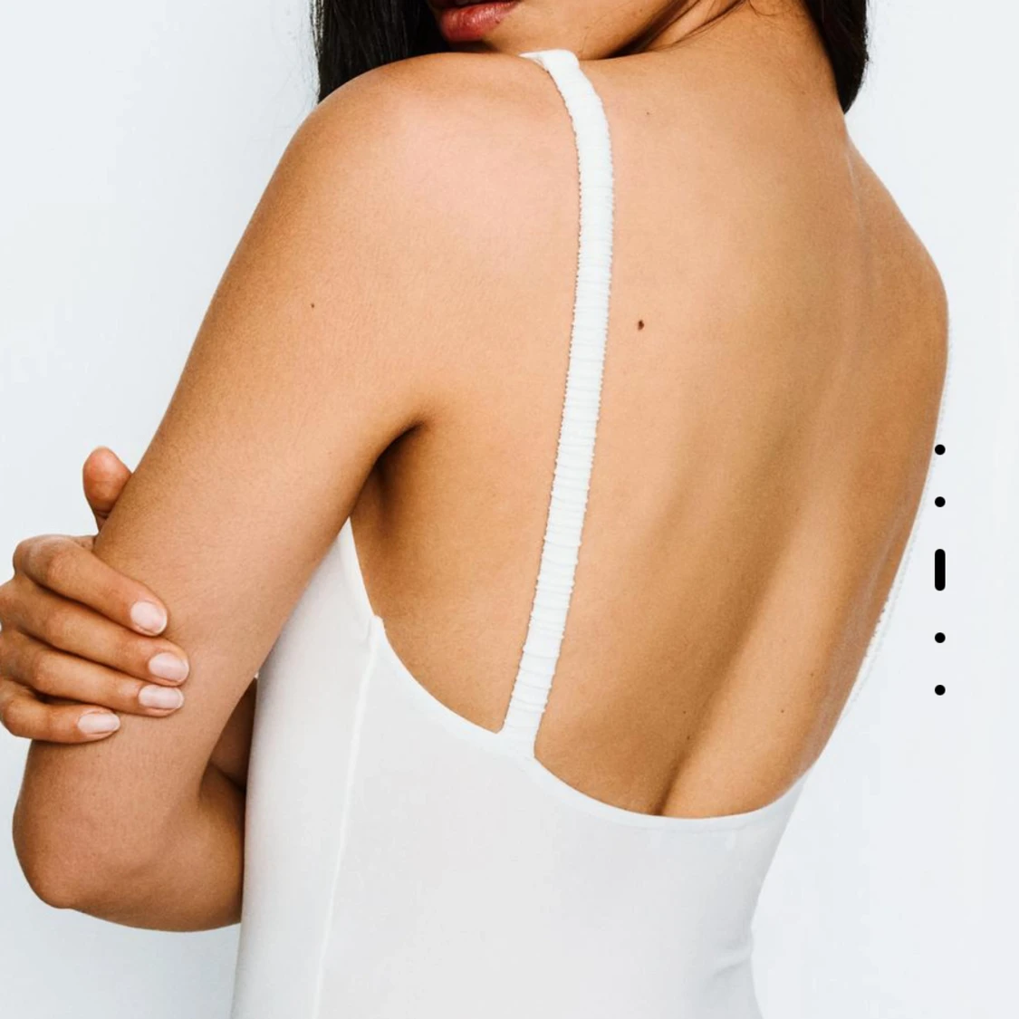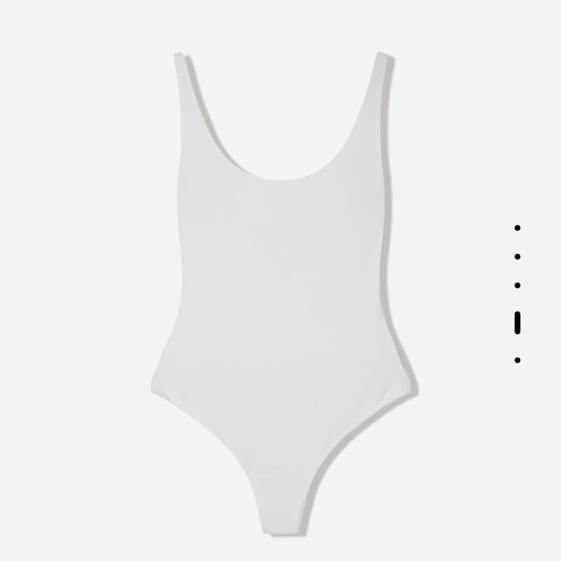 Vit body med låg rygg. Endast testad en gång men tyvärr förliten.