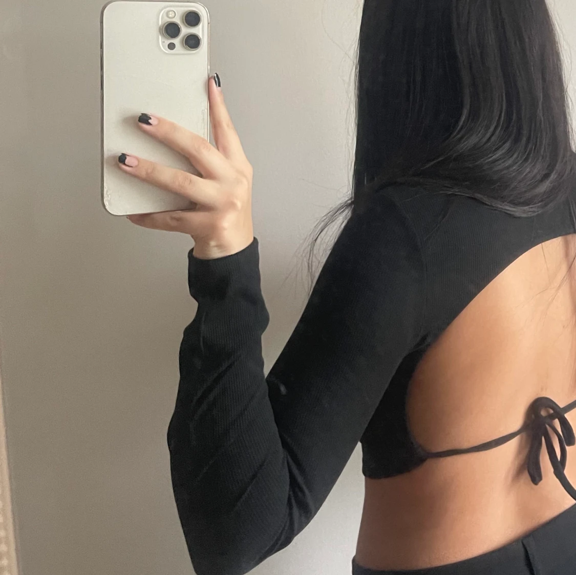 Svart gullig liten topp med öppen rygg och knytning ifrån Shein, jättefin i ryggen och så skönt material! Aldrig använd 😌😌