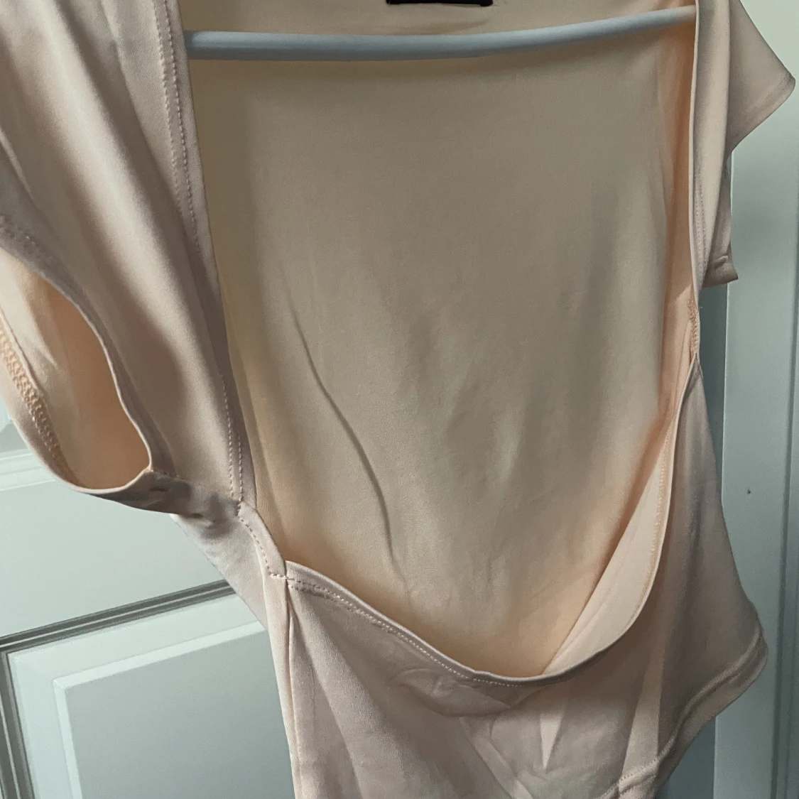 Snygg backless top! Jag säljer denna aprikos färgade toppen i storlek M. Bara använt toppen en gång, inga tecken på användning.
