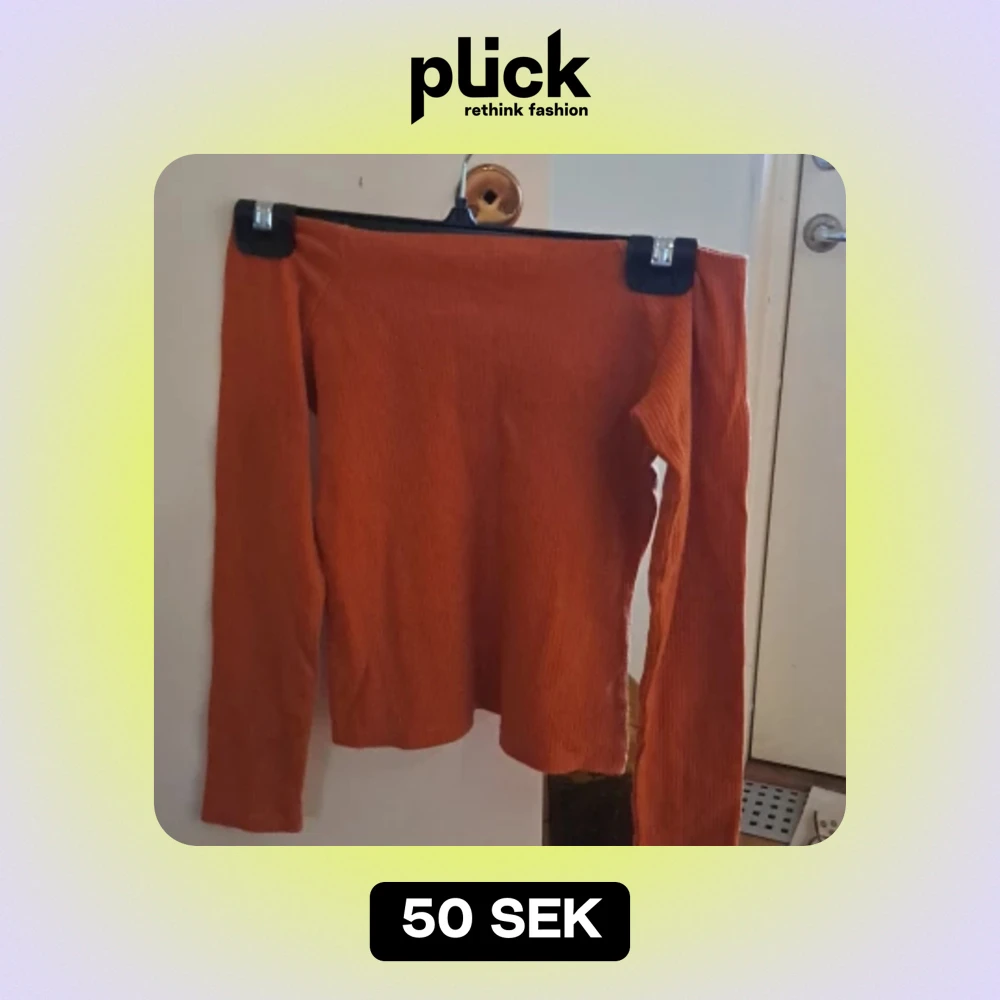 Säljer en snygg orange ribbad off-shoulder topp. Perfekt för vardag. Toppen är i ett mjukt och stretchigt material som sitter bekvämt på kroppen. Den har långa ärmar och en tight passform som framhäver figuren. Passar perfekt till höst- och vårsäsongen.