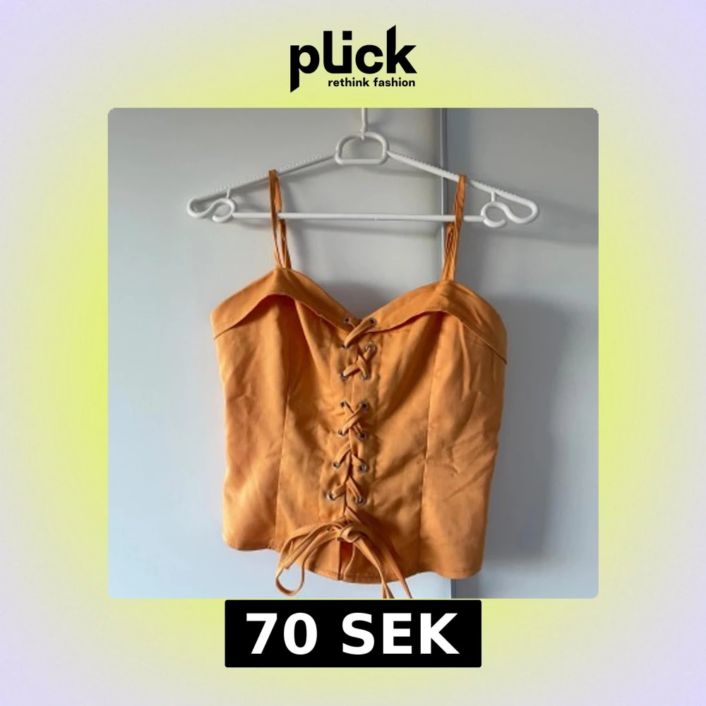 Snygg orange korsettopp med smala axelband och cool snörning framtill. Toppen har en lätt croppad passform. Perfekt för dig som vill sticka ut med en trendig och färgstark look.