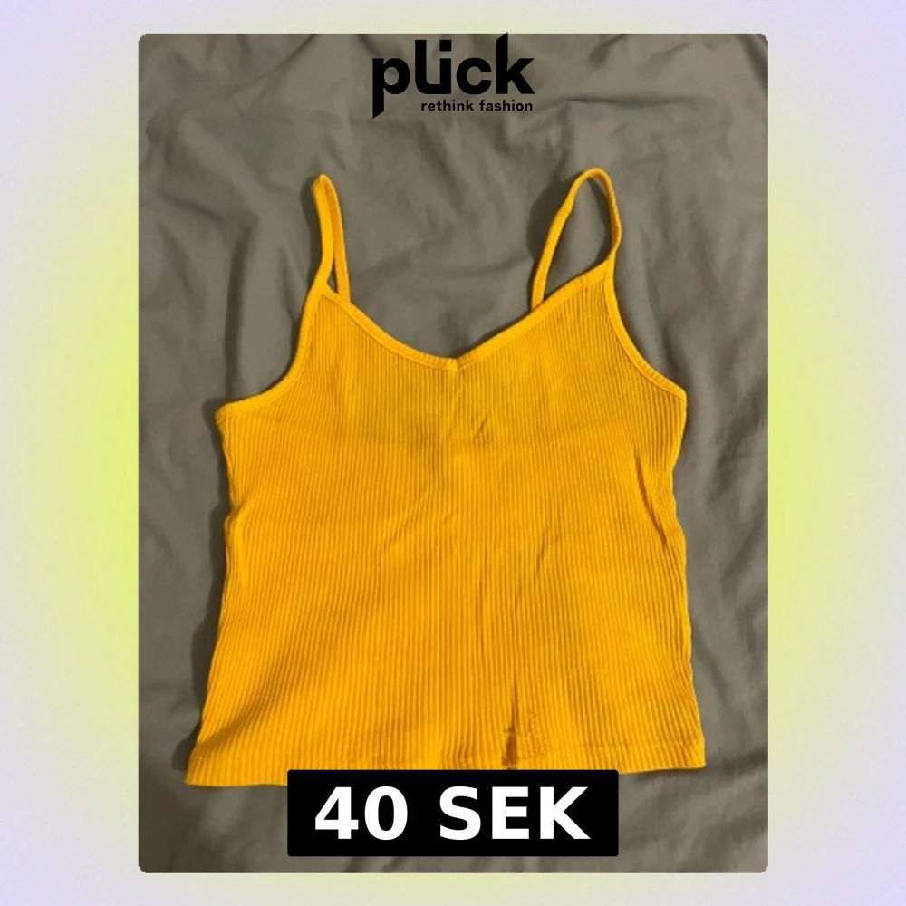 Snygg orange ribbad linnetopp med smala axelband och v-ringad hals. Toppen är croppad och har en figurnära passform, perfekt för varma dagar. Materialet är mjukt och stretchigt för extra komfort. Passar xs och s.