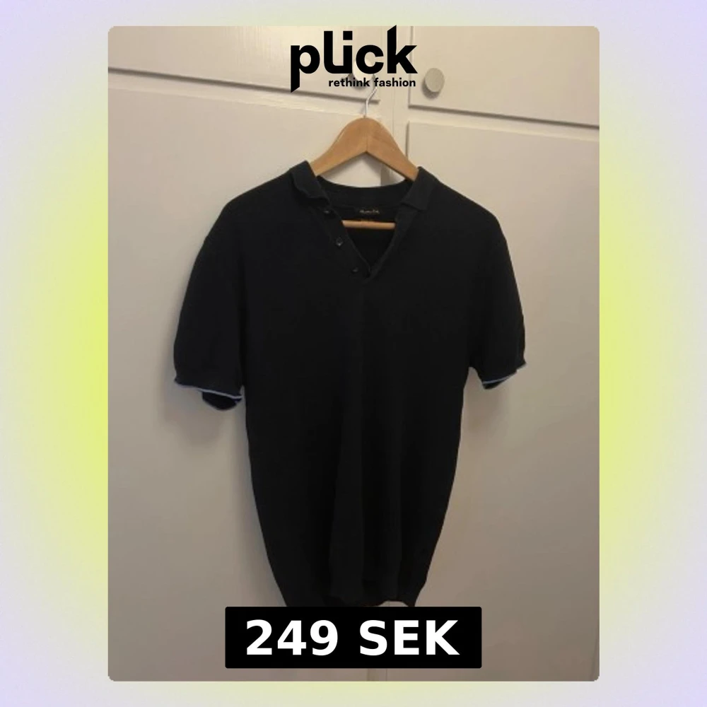 Snygg mörkblå stickad piké från massimo dutti med korta ärmar och krage med knappar. Perfekt för dig som gillar klassisk och stilren design. Materialet känns mjukt och bekvämt mot huden. Det står L i tröjan men passar mer M-S