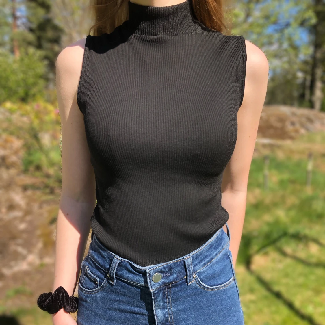 Ribbad topp utan ärmar. Säljer i fint skick.